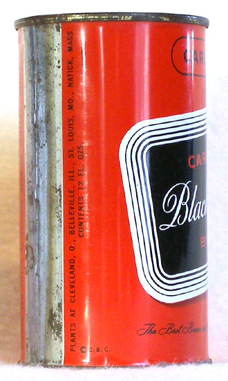 Black Label Beer Flat Top Beer Can from Carling Brewing Company, Natick, MA, USBC# 37-39, Grade 1/1+ Plants at Atlanta, Baltimore, Bellville, Cleveland, Frankenmuth, Natick, Tacoma.Top opened.