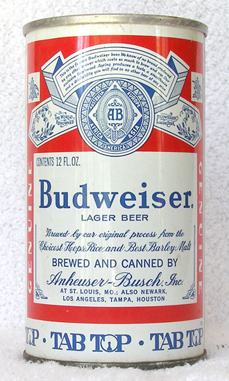 Budweiser Beer Pull Tab Beer Can from Anheuser-Bush, St. Louis, MO, USBC# n/a, Grade A1+ Early tab.