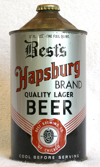 Bests Hapsburg Beer Quart Cone Top Beer Can